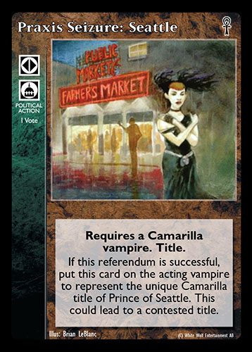 Nowa, niegrana karta Praxis Seizure: Seattle Vampire the Eternal Struggle z dodatku, w ktorym byla obecna.