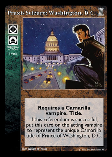 Nowa, niegrana karta Praxis Seizure: Washington D.C. Vampire the Eternal Struggle z dodatku, w ktorym byla obecna.