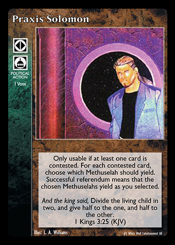 Nowa, niegrana karta Praxis Solomon Vampire the Eternal Struggle z dodatku, w ktorym byla obecna.