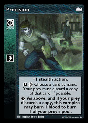 Nowa, niegrana karta Precision Vampire the Eternal Struggle z dodatku, w ktorym byla obecna.