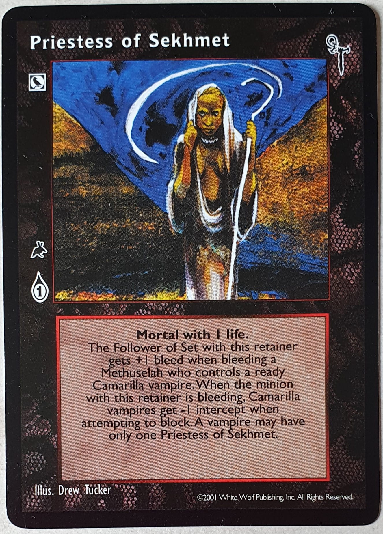 Nowa, niegrana karta Priestess of Sekhmet Vampire the Eternal Struggle z dodatku, w ktorym byla obecna.