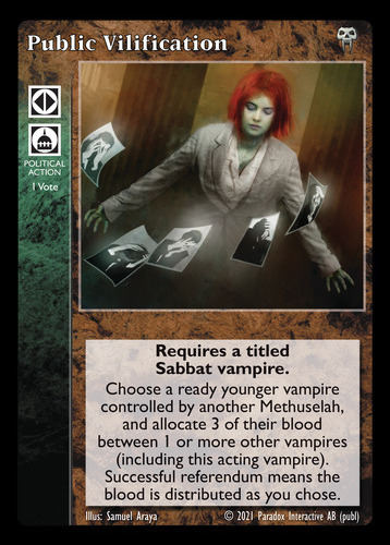 Nowa, niegrana karta Public Vilification Vampire the Eternal Struggle z dodatku, w ktorym byla obecna.