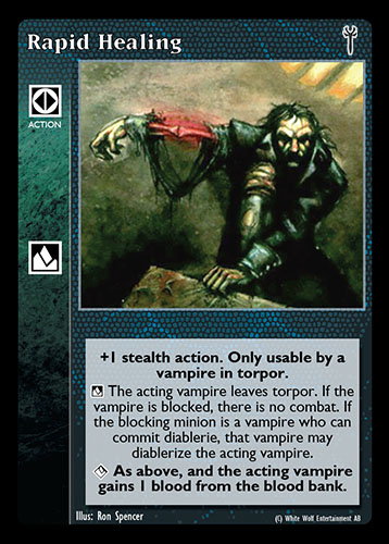 Nowa, niegrana karta Rapid Healing Vampire the Eternal Struggle z dodatku, w ktorym byla obecna.