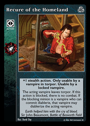 Nowa, niegrana karta Recure of Homeland Vampire the Eternal Struggle z dodatku, w ktorym byla obecna.