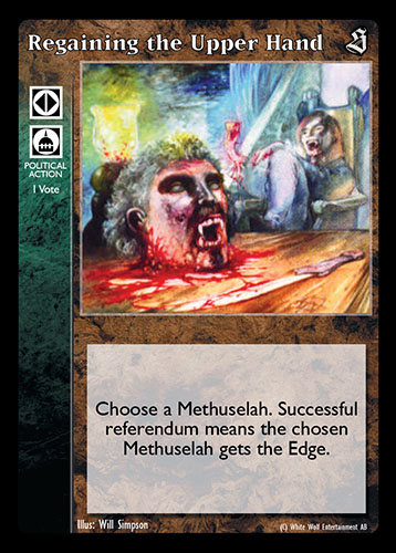 Nowa, niegrana karta Regaining the Upper Hand Vampire the Eternal Struggle z dodatku, w ktorym byla obecna.