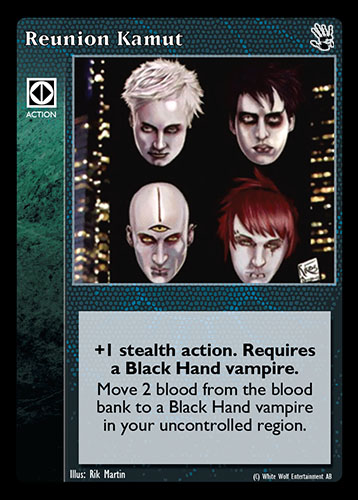 Nowa, niegrana karta Reunion Kamut Vampire the Eternal Struggle z dodatku, w ktorym byla obecna.