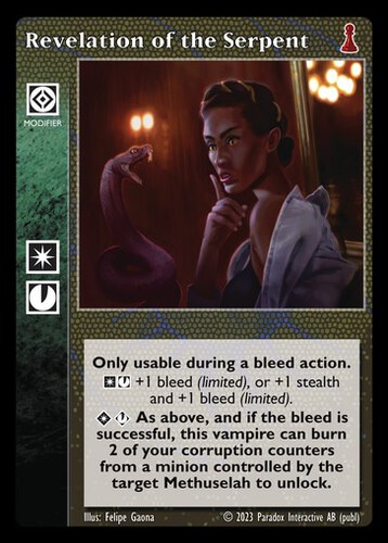 Nowa, niegrana karta Revelation of the Serpent Vampire the Eternal Struggle z dodatku, w ktorym byla obecna.