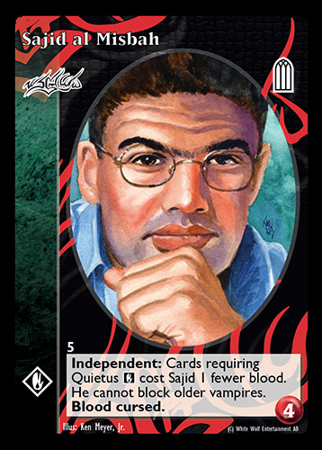 Nowa, niegrana karta Sajid al Misbah Vampire the Eternal Struggle z dodatku, w ktorym byla obecna.