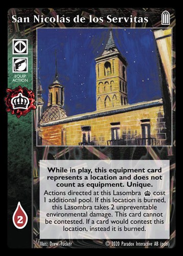 Nowa, niegrana karta San Nicolas de los Servitas Vampire the Eternal Struggle z dodatku, w ktorym byla obecna.