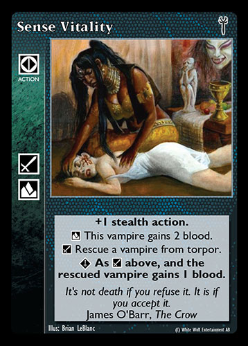 Nowa, niegrana karta Sense Vitality Vampire the Eternal Struggle z dodatku, w ktorym byla obecna.
