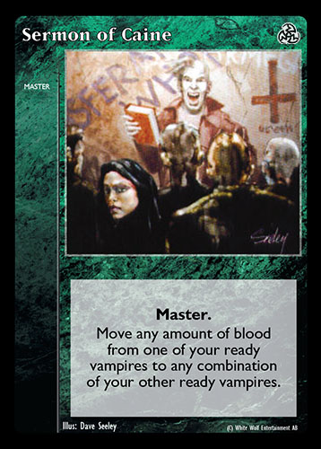 Nowa, niegrana karta Sermon of Caine Vampire the Eternal Struggle z dodatku, w ktorym byla obecna.