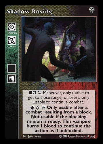 Nowa, niegrana karta Shadow Boxing Vampire the Eternal Struggle z dodatku, w ktorym byla obecna.