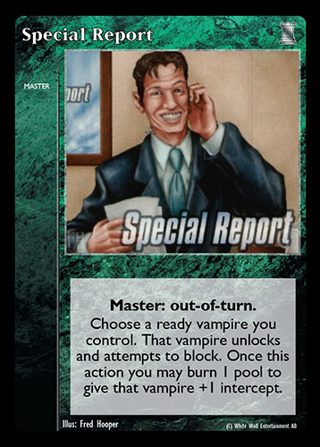 Nowa, niegrana karta Special Report Vampire the Eternal Struggle z dodatku, w ktorym byla obecna.