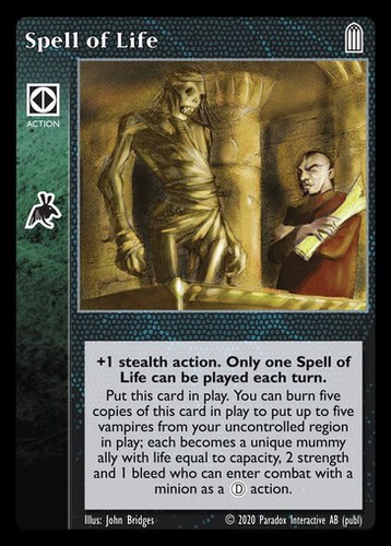 Nowa, niegrana karta Spell of Life Vampire the Eternal Struggle z dodatku, w ktorym byla obecna.