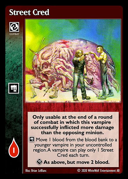 Nowa, niegrana karta Street Cred Vampire the Eternal Struggle z dodatku, w ktorym byla obecna.