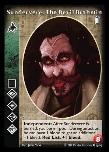 Nowa, niegrana karta Sundervere, The Devil Brahmin Vampire the Eternal Struggle z dodatku, w ktorym byla obecna.