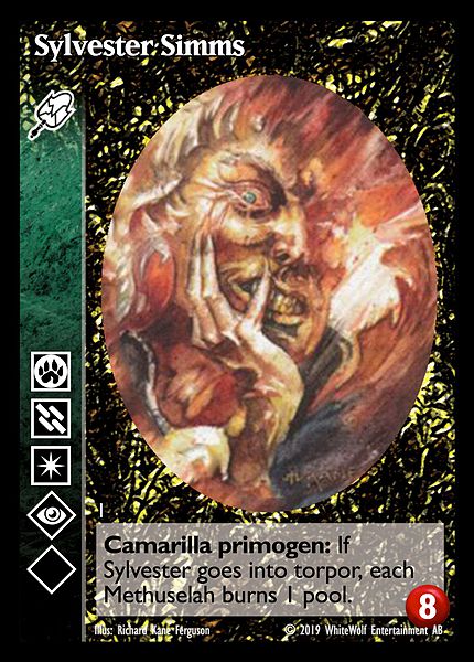 Nowa, niegrana karta Sylvester Simms Vampire the Eternal Struggle z dodatku, w ktorym byla obecna.