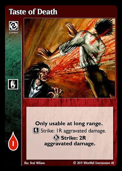 Nowa, niegrana karta Taste of Death Vampire the Eternal Struggle z dodatku, w ktorym byla obecna.