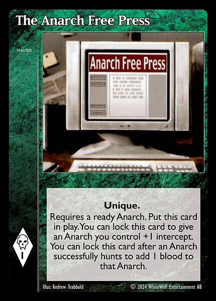 Nowa, niegrana karta The Anarch Free Press Vampire the Eternal Struggle z dodatku, w ktorym byla obecna.