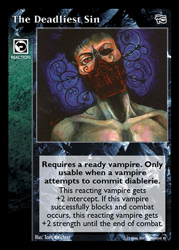 Nowa, niegrana karta The Deadliest Sin Vampire the Eternal Struggle z dodatku, w ktorym byla obecna.