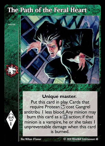 Nowa, niegrana karta The Path of the Feral Heart Vampire the Eternal Struggle z dodatku, w ktorym byla obecna.