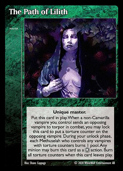 Nowa, niegrana karta The Path ol Lilith Vampire the Eternal Struggle z dodatku, w ktorym byla obecna.