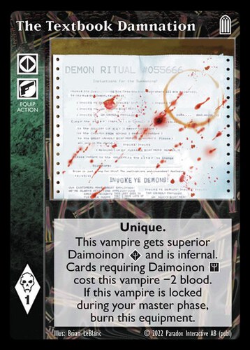 Nowa, niegrana karta The Textbook Damnation Vampire the Eternal Struggle z dodatku, w ktorym byla obecna.