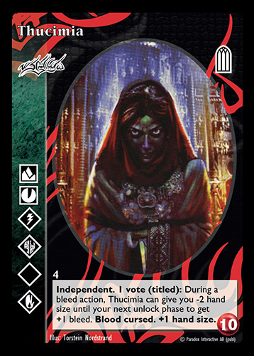 Nowa, niegrana karta Thucimia Vampire the Eternal Struggle z dodatku, w ktorym byla obecna.