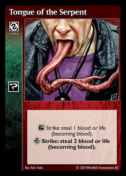 Nowa, niegrana karta Tongue of the Serpent Vampire the Eternal Struggle z dodatku, w ktorym byla obecna.