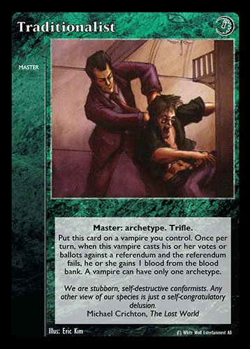 Nowa, niegrana karta Traditionalist Vampire the Eternal Struggle z dodatku, w ktorym byla obecna.