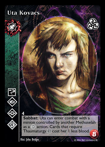 Nowa, niegrana karta Uta Kovacs Vampire the Eternal Struggle z dodatku, w ktorym byla obecna.