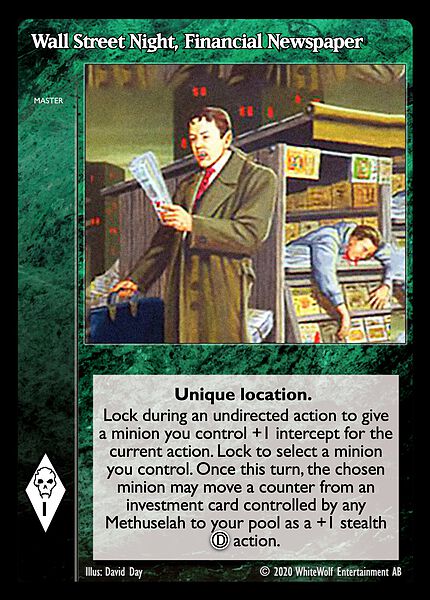 Nowa, niegrana karta Wall Street Night, Financial Newspaper Vampire the Eternal Struggle z dodatku, w ktorym byla obecna.