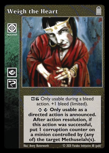 Nowa, niegrana karta Weigh the Heart Vampire the Eternal Struggle z dodatku, w ktorym byla obecna.