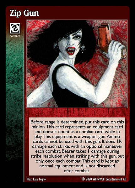 Nowa, niegrana karta Zip Gun Vampire the Eternal Struggle z dodatku, w ktorym byla obecna.